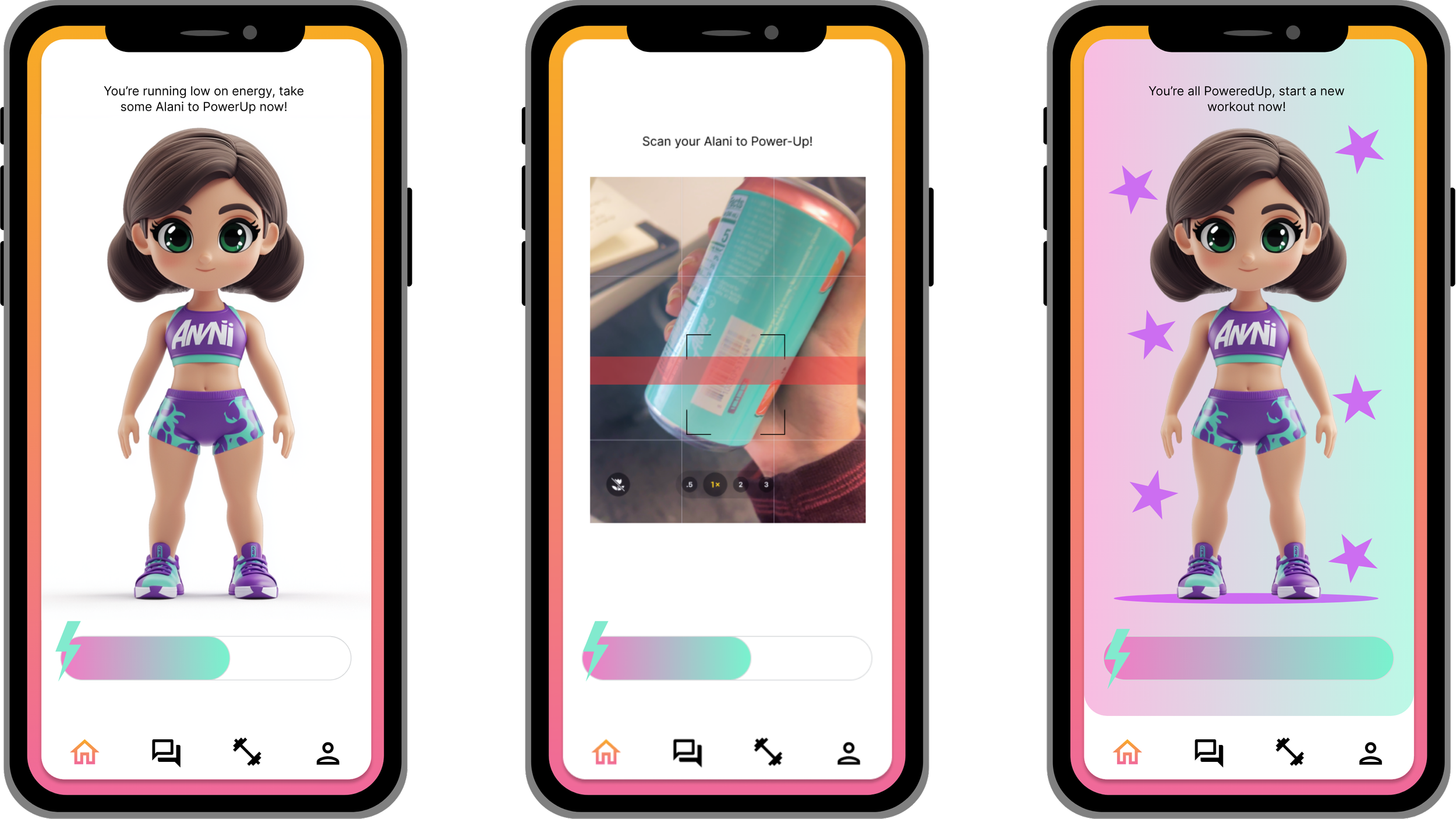 Gamifying the rewards program in an exciting, hands-on way by creating an app called “PowerUp by Alani.” This app would be used to track workouts paired with Alani products. This would keep the brand consistent while adding value to their customer base and retaining loyalty. The tracker would also add a competition element by showcasing leaderboards and challenges that other Alani customers will be able to take part of.
