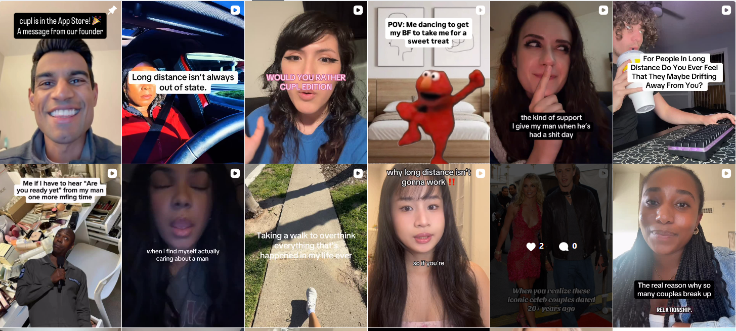 Grow Cupl's social presence and app awareness among couples through relatable, platform-native short-form video content. Content focused on driving engagement, retention, and community building among existing and new couples.